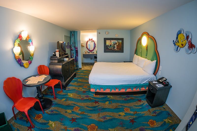 We have only personally stayed in the Little Mermaid rooms, at the very back of the resort, but there are a few options available to you if you want a particular theme. There are also the Lion King rooms, and the Cars rooms. These two are family suites and are much bigger than the Little Mermaid rooms.